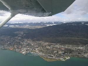 Am 24.04.2004 sind wir fürs Mittagessen nach La Côte am Genfersee geflogen. Das Wetter war toll, aber es war sehr windig. Wir hatten sehr starken Nordwind, um die 20 Knoten. Da wir Richtung Süden flogen, bedeutete dies, dass wir mit einem starken Rückenwind rechnen mussten und damit auch mit einer früheren Landung als geplant.